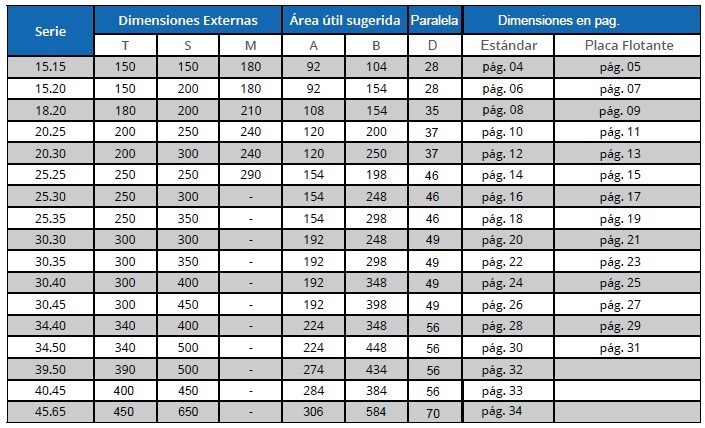 Disponibles en una amplia gama de dimensiones. Con o sin puente de extracción. Con opción de placa flotante.