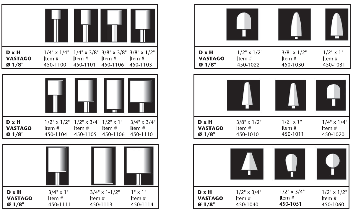 Fabricadas con la mejor lana 100% para una larga duración. Disponible con o sin montura. Puede utilizarse con diversos compuestos de pulido o desbastes para obtener un acabado limpio y de gran calidad en moldes, matrices y modelos. Disponibles en grados duro, medio y blando en la mayoría de las formas.